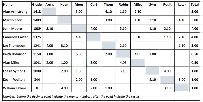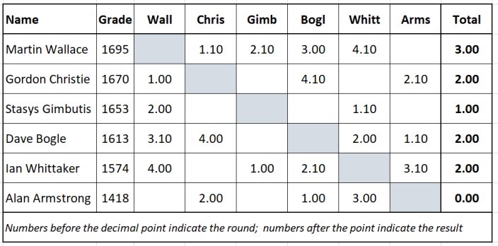 Here are the latest standings in the Borders Individual championships,Premier section