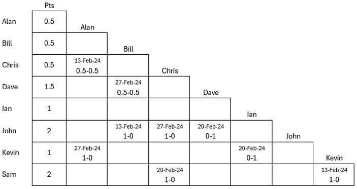 A further set of three games were played on Tuesday 27th February, with the following results: