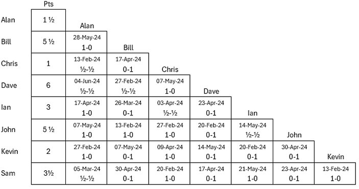 However, a draw was good enough for Dave, who played solid all the way through all his games, to win the Selkirk Club 2024 Championship and congratulations must go to Dave.