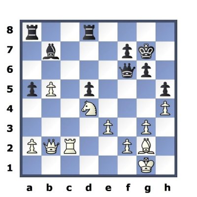 Note the Bishop lurking at a1, and pinning the Black Knight.